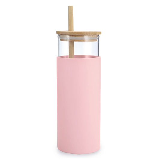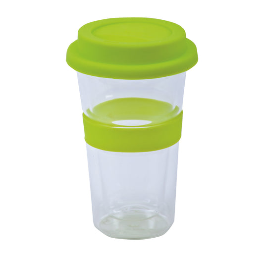 כוס שתיה מזכוכית עם מכסה סיליקון 330 מ”ל