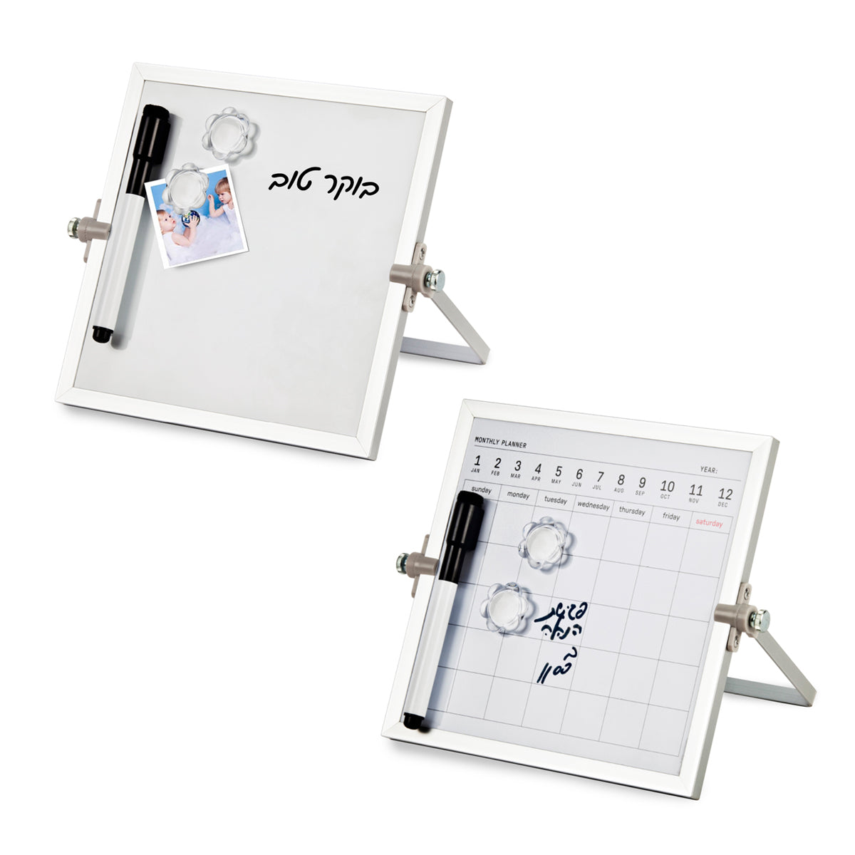 לוח מגנטי מחיק ושימושי המשלב צד חלק לרישום חופשי וצד נוסף עם לוח ארגון חודשי לניהול משימות ותכנון יעיל. כולל מרקר, מחק ושני מגנטים לנוחות עבודה מלאה מרגע השימוש הראשון. במידות קומפקטיות של ‎20×20‎ ס״מ, מתאים לתלייה במשרד, בבית או בעמדת עבודה אישית. ארוז באופן נוח לשיווק וקד״מ, עם 40 יחידות בקרטון – פתרון פרקטי, ייצוגי ובעל ערך יומיומי כמתנה לוועדי עובדים, חברות וארגונים.