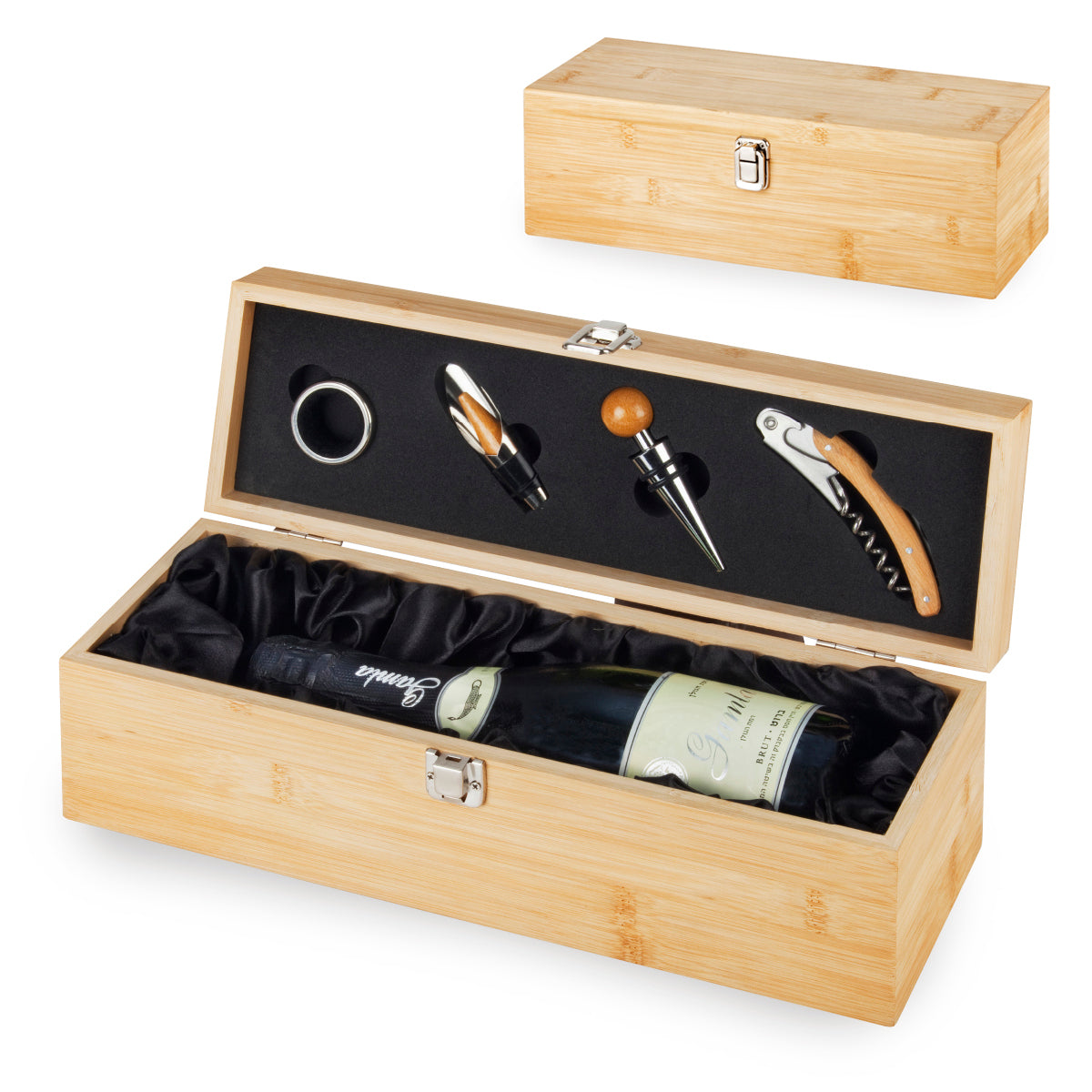 מארז יין יוקרתי הכולל סט פותחנים איכותי, המשלב פונקציונליות עם מראה אלגנטי ומרשים. המארז מגיע בקופסת עץ איכותית עם סגירה, המעניקה חוויית מתנה יוקרתית ומתאימה במיוחד למיתוג עסקי. מידות המארז: 11×11×36 ס"מ. מספר יחידות בקרטון: 12. פתרון אידיאלי כמתנה לוועדי עובדים, חברות ופעילויות פרסום וקד"מ.
