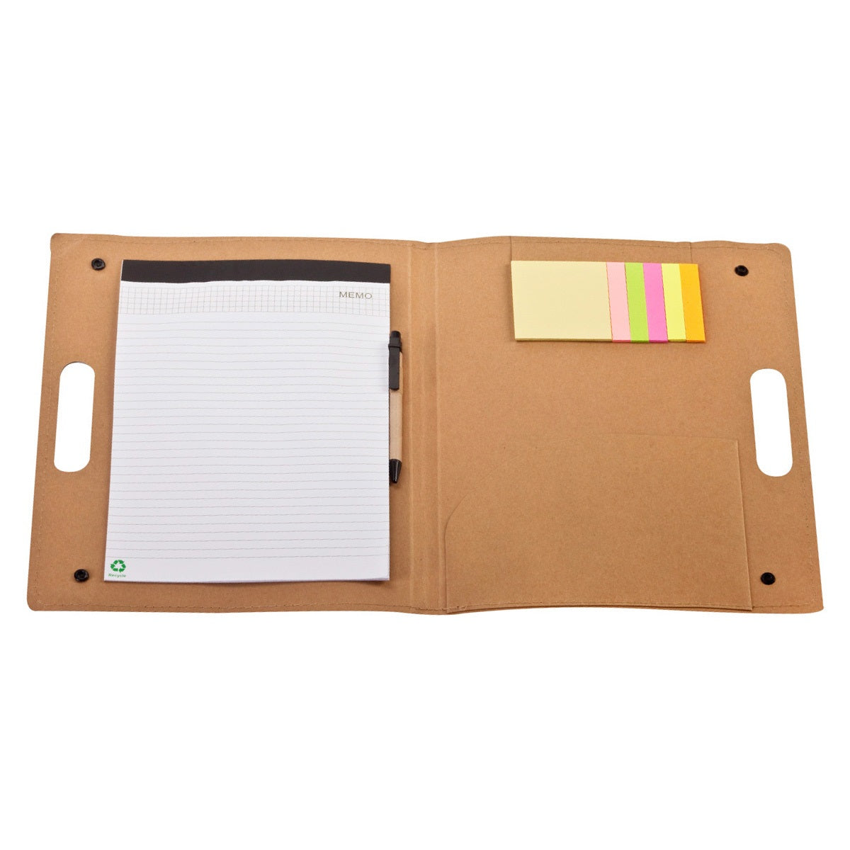 מכתביית A4 פונקציונלית ומוקפדת, המשלבת נוחות עבודה עם ערך סביבתי. עשויה מנייר ממוחזר וכוללת בלוק נייר שורה, כיס פנימי לאחסון מסמכים, נייר ממו דביק ודגלונים צבעוניים לניהול וסימון יעיל של משימות. במידות 34×29 ס״מ, מתאימה לפגישות, כנסים ועבודה יומיומית במשרד או מחוצה לו. פתרון שימושי ומרשים כפריט קד״מ איכותי לוועדי עובדים ולחברות המעוניינות במוצר פרקטי, ייצוגי וידידותי לסביבה.