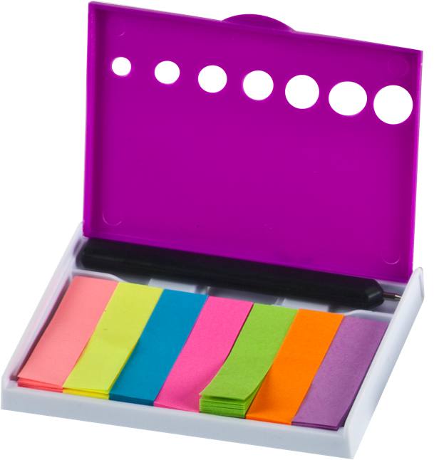 מעמד פלסטיק חכם ופונקציונלי לניהול משימות ותזכורות בצורה נוחה ויעילה. כולל מכסה וקליפס אחורי לתפיסה קלה של דפים, לצד דגלונים צבעוניים במבחר גוונים ועט משולב – הכול בהישג יד אחד. בעיצוב קומפקטי ובמידות 9.3×6×1.2 ס״מ, מתאים לשולחן העבודה, לתיק או לנסיעות. פתרון שימושי ופרקטי למשרד המודרני, אידאלי כמתנת קד״מ לוועדי עובדים ולחברות המעוניינות בפריט יומיומי עם נוכחות ומיתוג.
