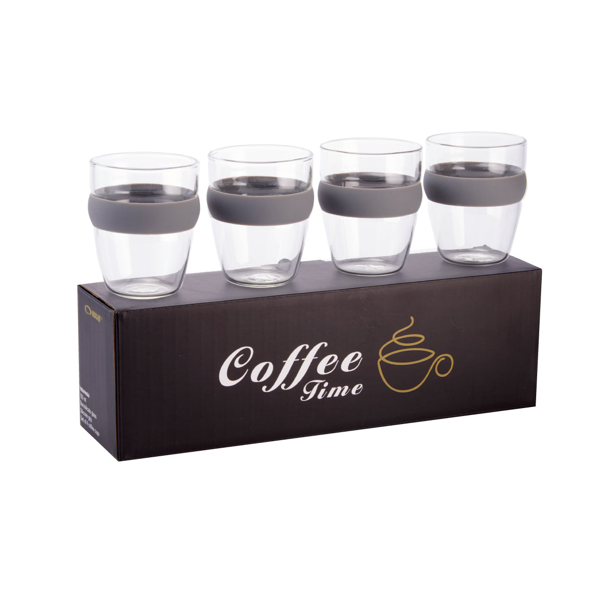 סט של 4 כוסות זכוכית מעוצבות, בשילוב חבק סיליקון בשלל צבעים המעניק נוחות אחיזה ומראה צעיר ומרשים. הכוסות עשויות זכוכית איכותית ועמידה המתאימה לשימוש במדיח, בנפח 150 מ״ל – אידאליות לשתייה חמה או קרה. הסט מגיע באריזת מתנה מוקפדת, ומהווה פתרון מושלם למתנה ייצוגית עבור ועדי עובדים, חברות ופעילויות פרסום וקד״מ. כמות בקרטון: 8 סטים.