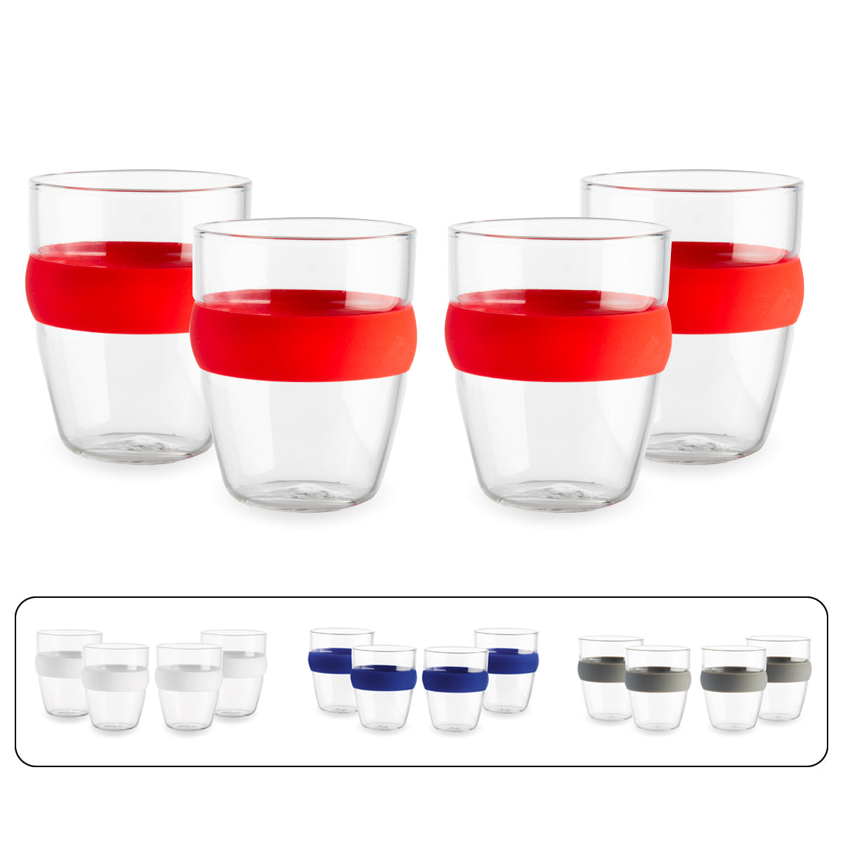 סט כוסות 150 מ"ל עם חבק סיליקון צבעוני