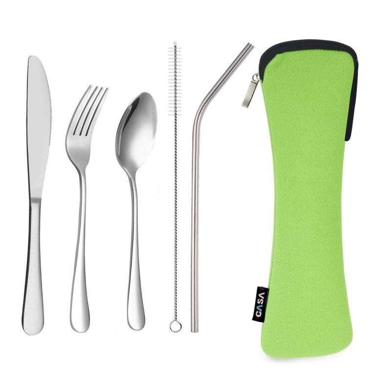 סט סכו"ם אישי מנירוסטה, קש ומברשת ניקוי