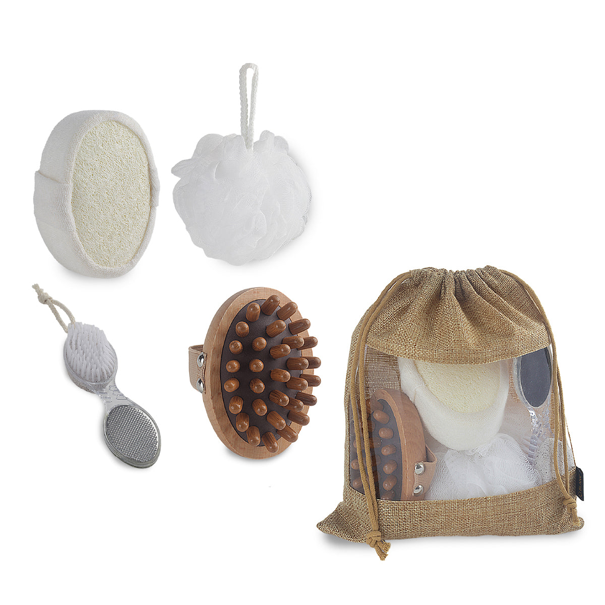 מארז טיפוח מושלם ופרקטי באריזת תיק יוטה איכותי עם חלון שקוף לתצוגה מרשימה ונוחה. המארז כולל מגוון אביזרי רחצה מפנקים: מברשת רחצה ועיסוי, ספוג פרח רך ונעים, ספוג פילינג מליפה לניקוי יסודי ומברשת 4 ב-1 לפדיקור מלא. כל הפריטים נבחרו בקפידה לשדרוג חוויית הטיפוח היומיומית ולהענקת תחושת רעננות וניקיון. התיק עצמו נוח לנשיאה וניתן לשימוש חוזר, מה שמוסיף ערך פרקטי למוצר. המראה הטבעי של היוטה בשילוב החלון השקוף יוצר מראה אסתטי ומזמין. מתאים במיוחד כמתנה איכותית לוועדי עובדים, חברות ומוצרי פרסום וקד״מ. נארז בקרטון של 20 יחידות, אידיאלי לחלוקה רחבה וממותגת.