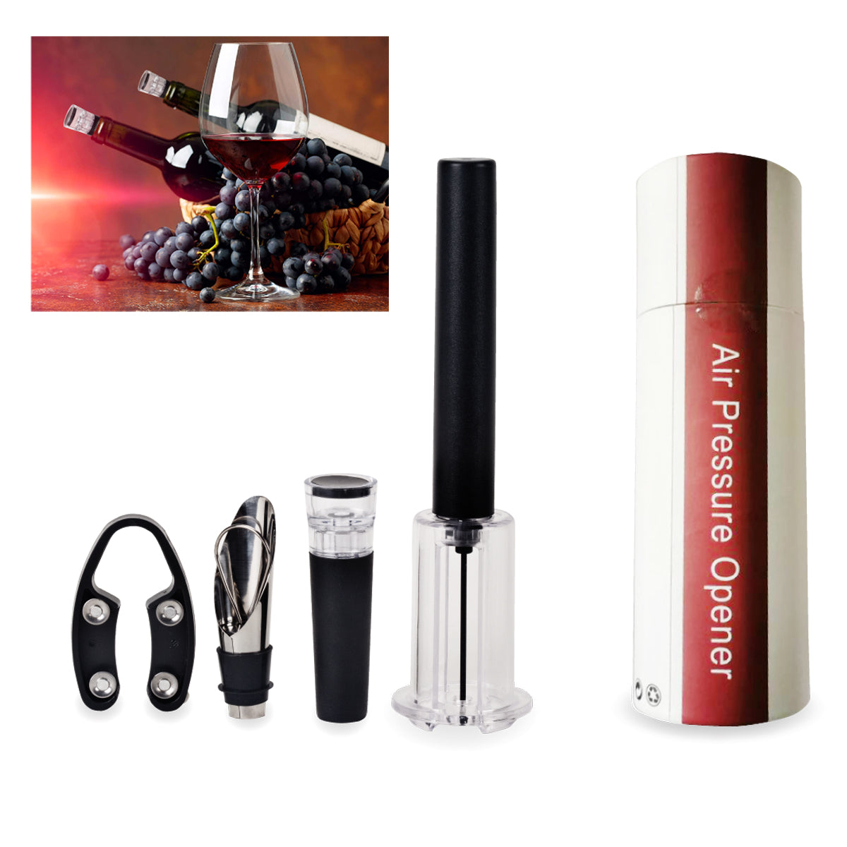 סט אביזרי יין מתקדם ואלגנטי הכולל פותחן אוויר ייעודי לפקקי שעם לפתיחה קלה וללא מאמץ, מקלף פויל מאלומיניום, פיית מזיגה עם פקק ופקק עם משאבת ואקום לשמירה על טריות היין ומניעת חמצון. הסט מגיע באריזת מתנה מעוצבת בגודל Ø6.5×22 ס"מ, המשלבת מראה יוקרתי עם שימושיות יומיומית. פתרון מושלם כמתנה איכותית וממותגת לוועדי עובדים, חברות ופעילויות פרסום וקד"מ. מספר יחידות בקרטון: 24.