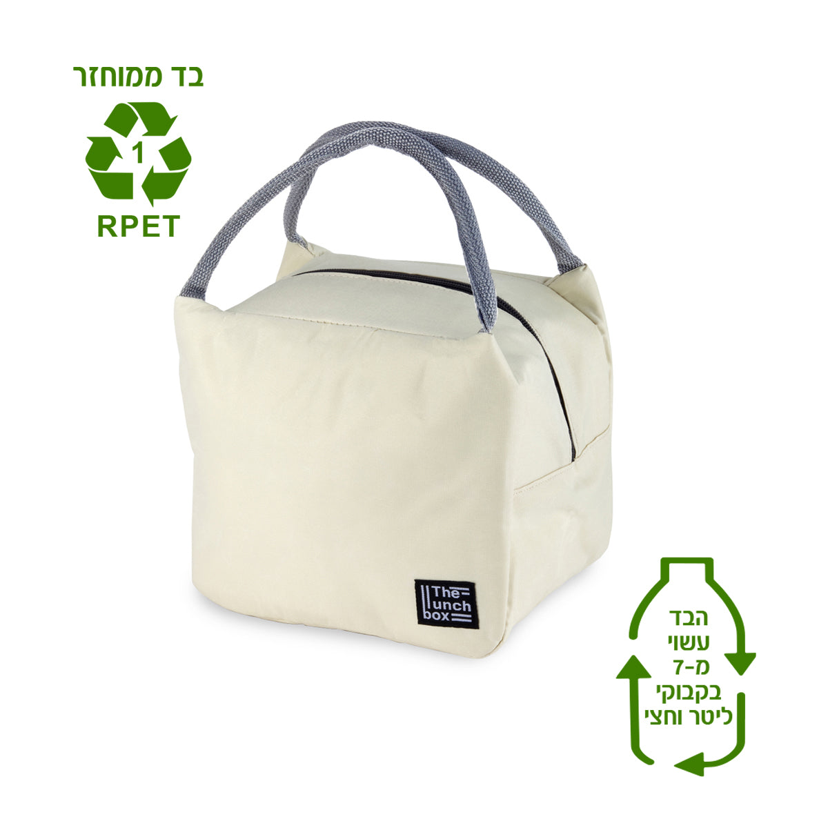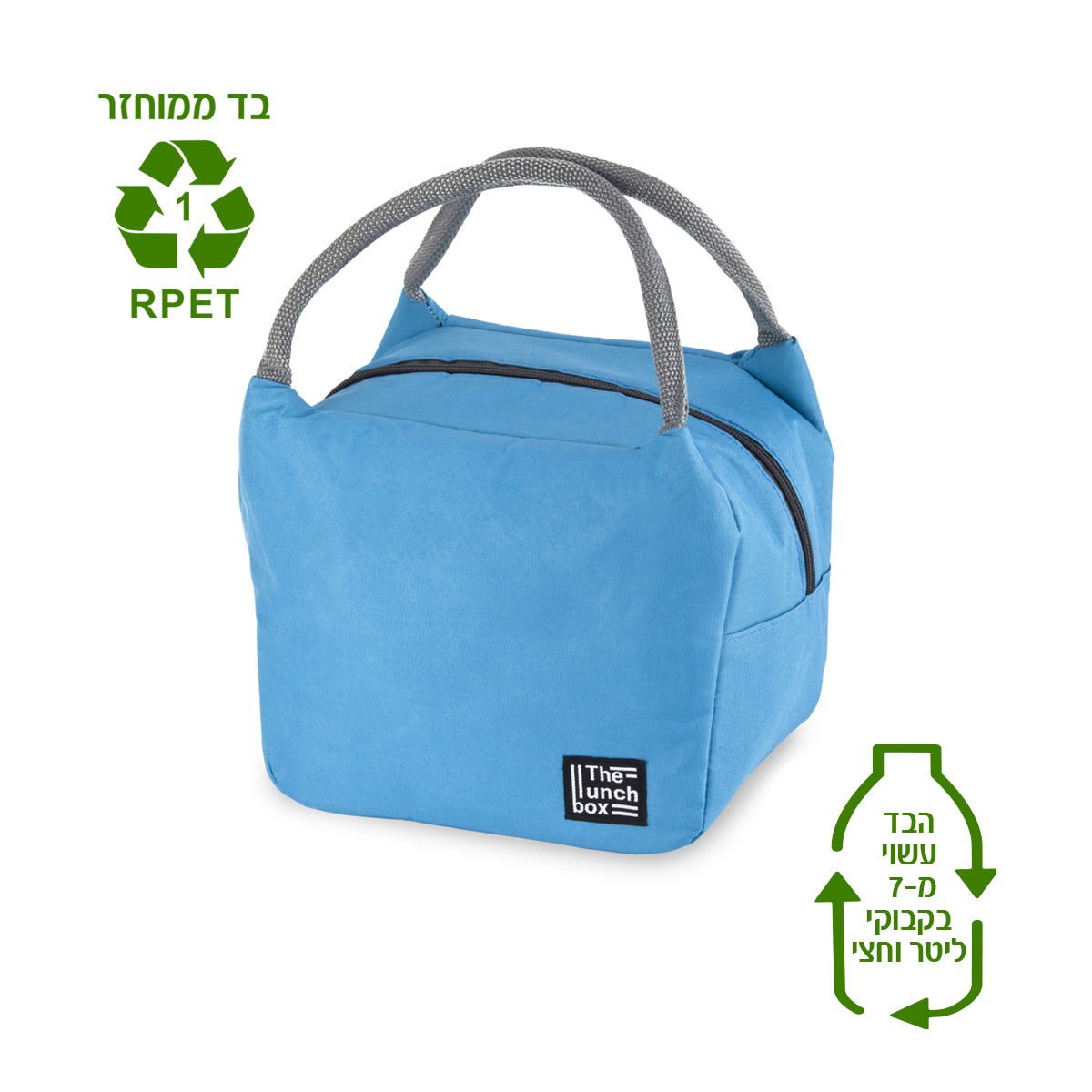 צידנית אוכל בנפח 7 ליטר, המשלבת שימושיות יומיומית עם מחויבות אמיתית לשמירה על איכות הסביבה. הצידנית עשויה מבד ממוחזר המיוצר מבקבוקי שתייה בנפח 1.5 ליטר, וכוללת ציפוי פנימי מאלומיניום לשמירה יעילה על טמפרטורת המזון. היא מצוידת בשתי ידיות אחיזה לנשיאה נוחה ובסגירת רוכסן בטיחותית לשמירה על התכולה. מידות המוצר הן 16×20×23 ס"מ. הצידנית מסופקת בקרטון פנימי של 25 יחידות ובקרטון חיצוני של 50 יחידות. פתרון אידיאלי כמתנה ירוקה, שימושית וממותגת לוועדי עובדים, חברות ופעילויות פרסום וקד"מ, המשדר ערכי קיימות, איכות וערך יומיומי.